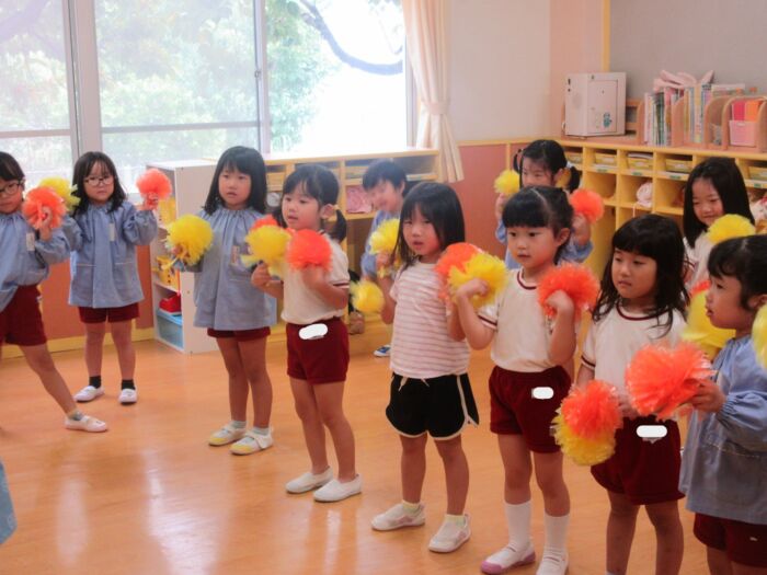 もも3歳児 がんばるぞー!オー☆ 2025年10月3日 93 明日はいよいよ運動会☆ 今までかけっこも踊りも頑張って練習しました。大勢の人の前でちょっぴり恥ずかしいかもしれませんが、楽しく走ったり踊ったりできたらいいなと思います。温かく見守ってくださいね☆ がんばるぞー!エイエイオー!!