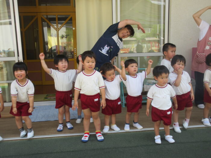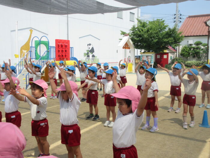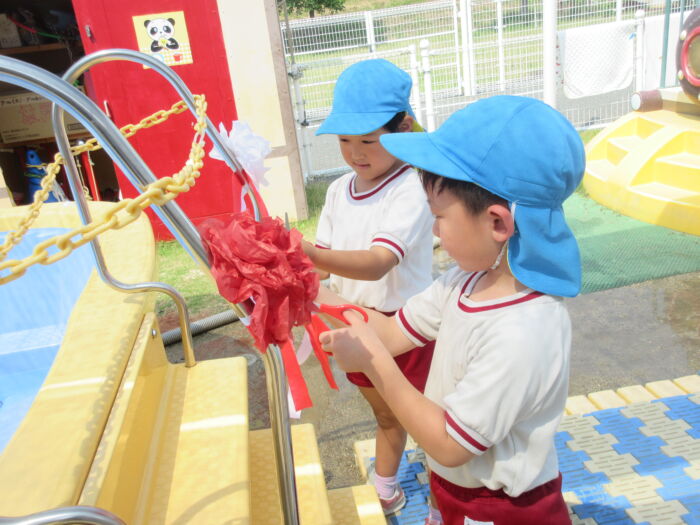 水の神様にお願いをしましたプール開き、テープカットをしました!ラジオ体操もして準備完璧です☆