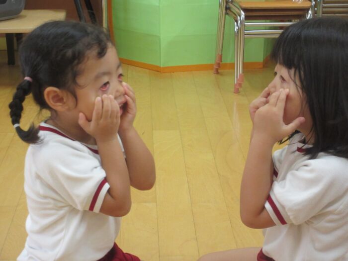 「にらめっこしましょ わらうとまけよ あっぷっぷ!」
