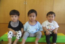 カエルさんに変身してホールで遊びました。友だちと手をつないで歩いたり、電車ごっこになったりできました。最後はみんなでボールを追いかけてホール中をたくさん動き回って遊べました!元気なカエルさんの大集合です!!