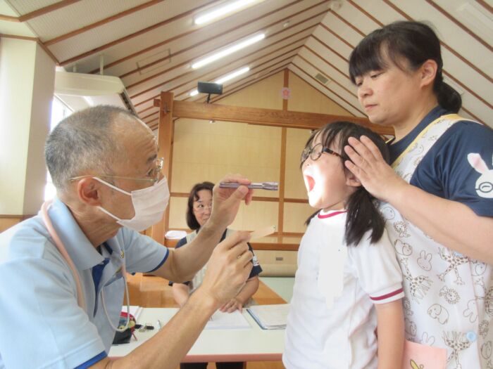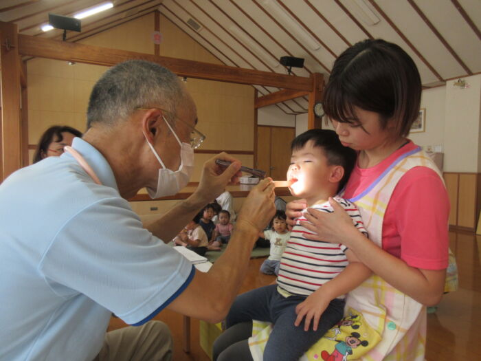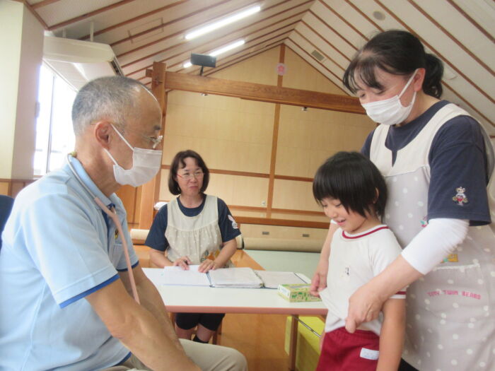 園のくらし 内科健診がありました 2025年10月14日 78 梅組・菊組さんは自分の名前や『ありがとうございました』とお礼の挨拶も言えていましたよ。 季節の変わりめで乾燥肌や鼻水が出て風邪をひいている子が多く見られました。早めの対応で重症化を防ぎましょう。