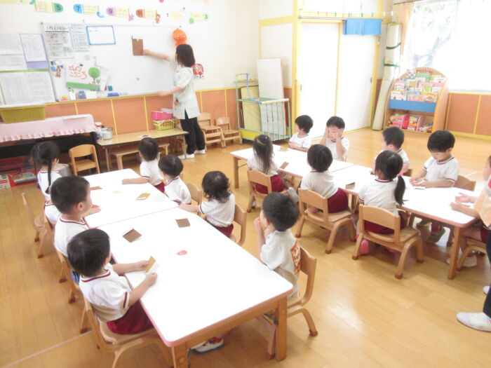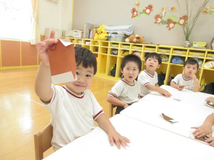 最後の部分が難しく「できな~い!」と言う子もいましたが、保育士と一緒にすることで楽しんですることが出来ていましたよ(^^♪