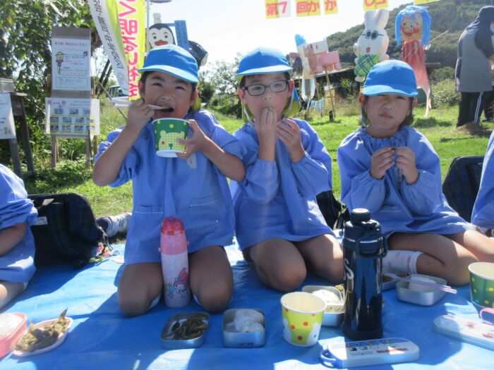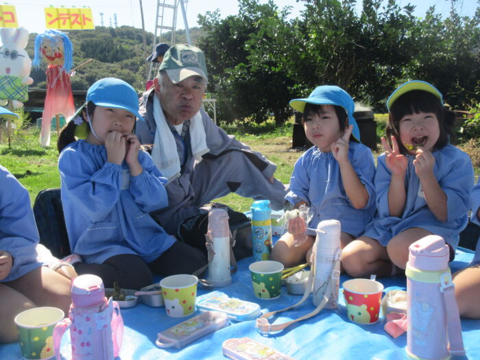 そして採れたての枝豆を茹でたり豚汁を作ってもらい、みんなんで美味しくいただきました。お家から持ってきたおにぎりも「美味しすぎる~!」と言いながら嬉しそうに友達と見せ合って食べていましたよ。 明日は親子遠足!!楽しみが続きます♡
