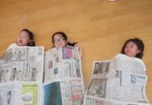 今日は新聞紙で遊びました。まずは新聞紙のお布団でお...